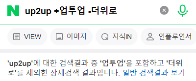 A. "up2up"이라는 검색 결과에서 "업투업"라는 단어만 제외된 검색 결과를 찾을 경우
