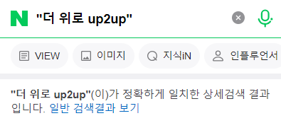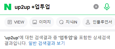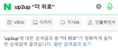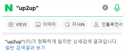 A. "up2up"이라는 검색 결과에서 "업투업"라는 단어가 꼭 포함되어 있는 검색 결과를 찾을 경우